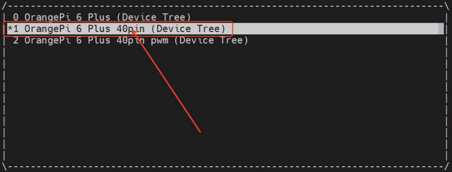 В системах с ядром Linux 6.1 необходимо убедиться, что система загружена в режиме 1 Orange Pi 6 plus 40pin (Device Tree).