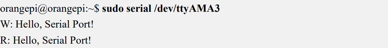 Используйте команду sudo serial /dev/ttyAMA1 для проверки функции обратной связи последовательного порта, как показано на рисунке ниже. Если вы видите, что содержимое чтения и записи согласовано, это означает, что функция последовательного порта работает нормально.