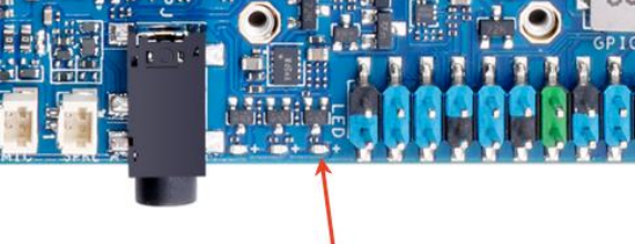 Красный светодиод горит когда плата работает от подключенного аккумулятора. Если же плата разработки подключена к источнику питания и аккумулятор заряжается, то красный светодиод мигает.