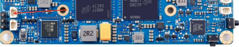 На отладочной плате предусмотрен разъём для подключения батареи RTC, его расположение показано ниже: